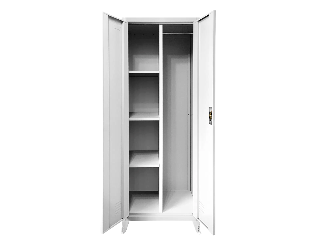 • 2 puertas batientes, barra de colgar, espejo y bandejas interiores fijas.